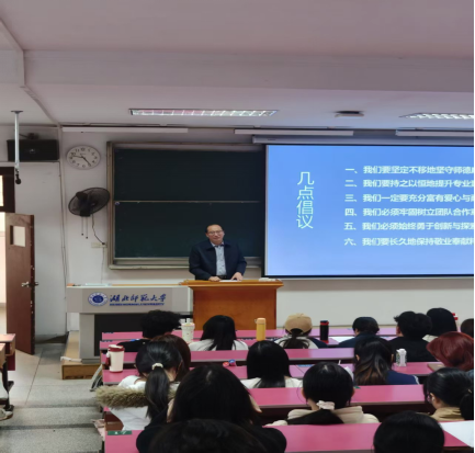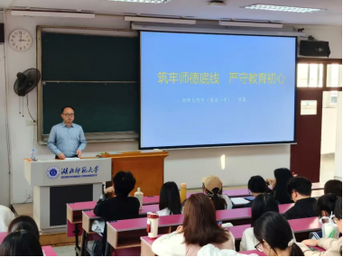 为深入贯彻落实新时代教师队伍建设要求,强化师范生未来职业道德规范,11月13日14:30-17:30,304am永利集团附属中学 (黄石一中)洪喜书记在教育大楼1J32教室举办题为“筑牢师德底线 严守教育初心”的讲座。学院葛绪广副院长、地理课程与教学论教研室丁召静老师以及2023级地理科学专业本科生和教育硕士参加活动。